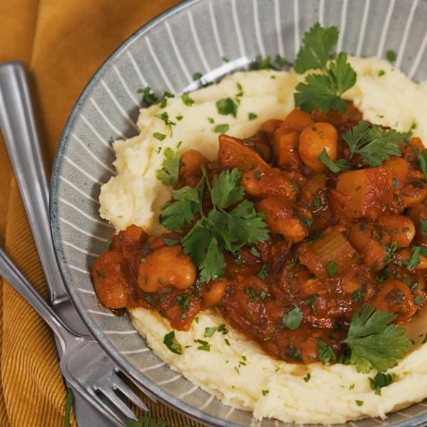 Fazuľovo-tekvicové ragú so zemiakovým pyré